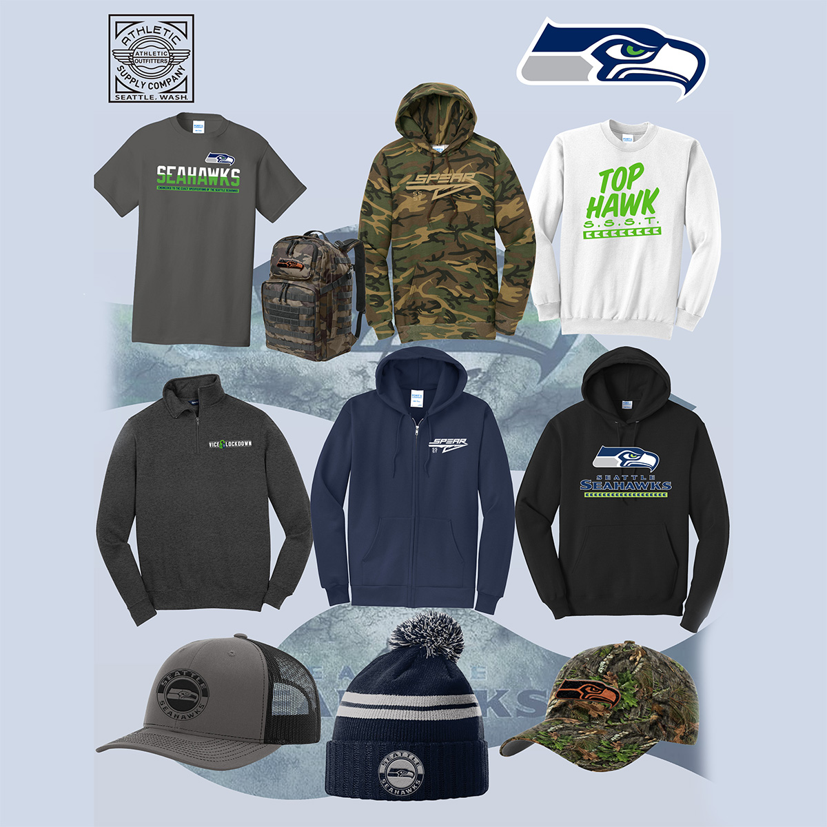 Since 1932, Athletic Supply has been a cornerstone in the world of custom athletic and corporate gear, and our work with the Seattle Seahawks exemplifies our commitment to excellence. The demo store allows potential clients and Seahawks enthusiasts to explore how we bring the team’s vibrant blue and navy palette, fierce logos, and performance-driven designs to life. Whether you’re a member of the 12th Man looking to gear up or an organization inspired by the Seahawks’ model, this demo store reveals the depth of customization and service Athletic Supply delivers.
